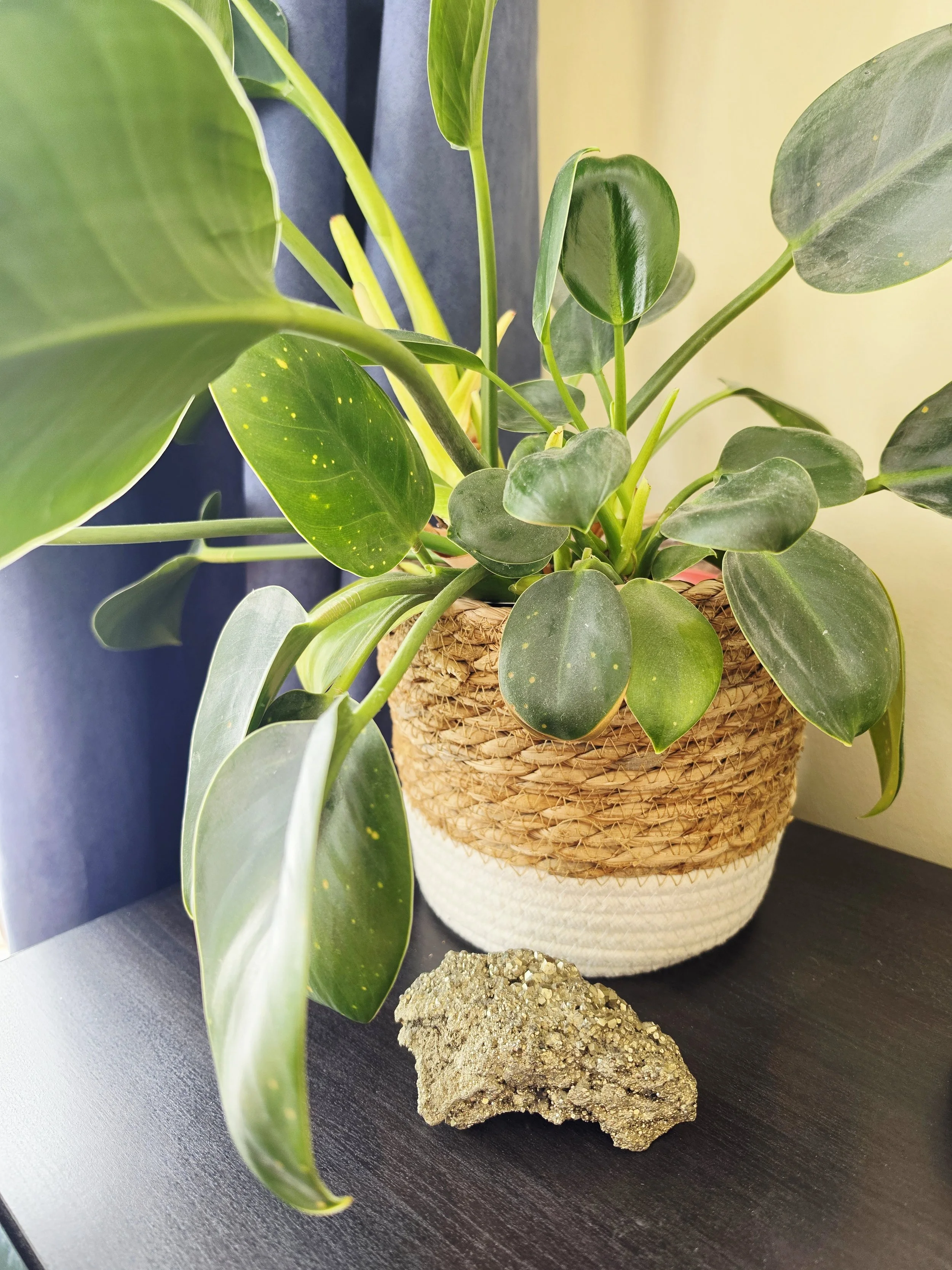 Ok, so there is something so calming about being surrounded by nature and natural elements. Having elements paired together, like crystals and plants, help bring a stable, and grounded energy to your home.