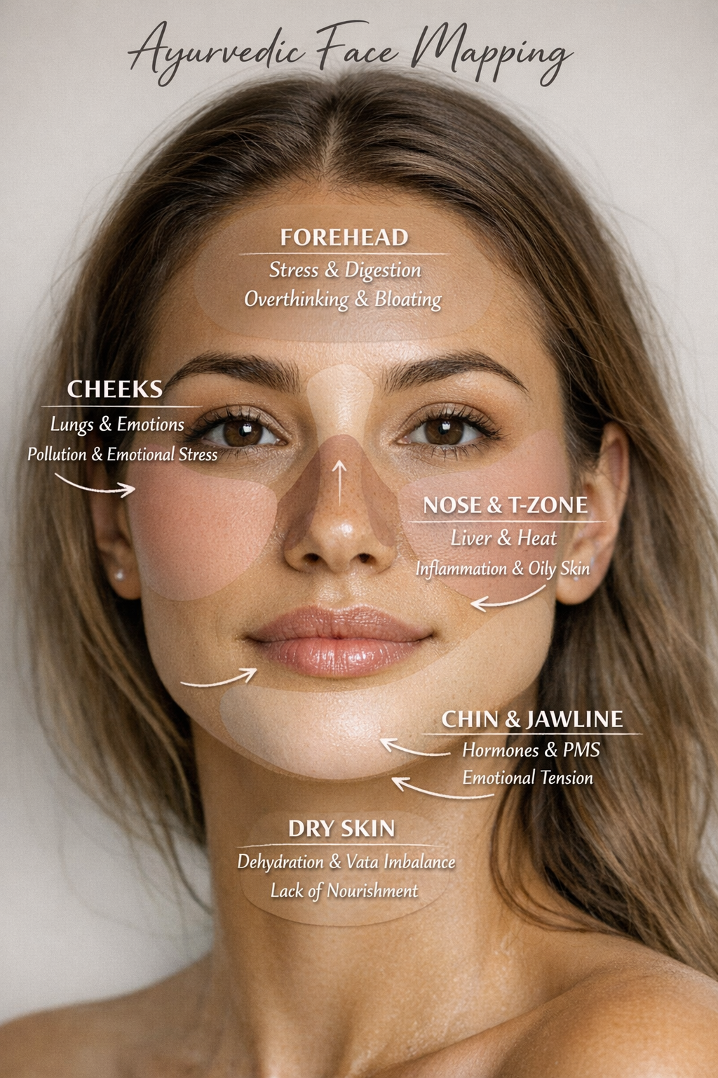 In Ayurveda, your face is a reflection of your internal world, it shows: your digestion, your stress levels, your hormones, and your energy.